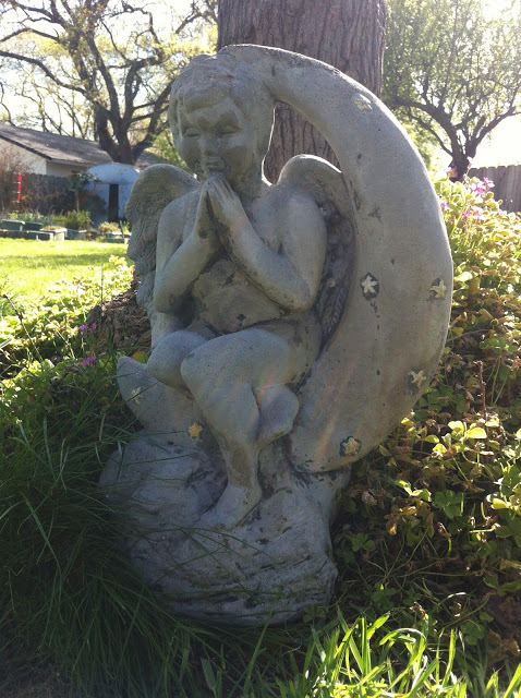 For many years now I have found myself entering into a peaceful zone when I garden and work outside in the yard. When I was single I spent many hours in my yards and I filled them with flowers and colorful garden art. My yards in the past were small to modest in size, yet I still managed to spend hours and hours wiling away the time and enjoying digging in the dirt. When my husband and I bought our first home together we were fortunate to find an older home, built in the 50’s, in a neighborhood where most homes have very generous yards and with existing trees and plants. Our back yard, sometimes referred to as the Fairchild Park by some family and friends, is home to a majestic oak, a giant redwood, a cherry tree, a plum tree, a pear tree and a pomegranate tree. We have also added a dogwood, a miniature Japanese maple, a red bud and other various plants and a stone patio.