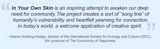 This In Your Own Skin documentary short is about nothing short of unlocking human potential and joy. I’ve seen the potential for human beings to share in such a powerful openhearted way. The further I go into this project, the more I trust our deep intelligence. I experience people being genuinely authentic. We are living differently now in these challenging times. We are living more and more in community and in ways that we really support each other.