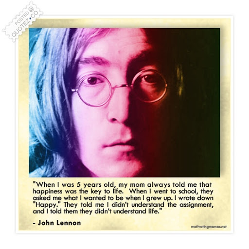 I love the quote by John Lennon featured above, “When I was 5 years old, my mom always told me that happiness was the key to life. When I went to school, they asked me what I wanted to be when I grew up. I wrote down ‘Happy.’ They told me I didn’t understand the assignment, and I told them they didn’t understand life.”