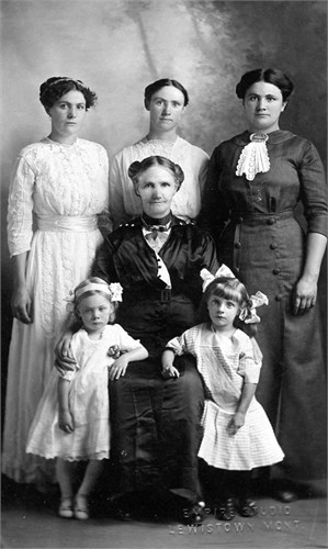 Lizzie and Valie took the train and returned in order to help Carl with the young family. It became apparent he could not work and care for seven children. Annie’s son, Ira Caldwell, was sent off by train to his sister Brazilla in Green River, Wyoming. Electra and 11 and Bertha 9, and they stayed with their father on the ranch at Olathe. Lizzie took the four smaller children back to Denton, Montana. Lora was about 7, Clara about 5, Carlos just past two and Lyman was a new baby only a little over a month old.